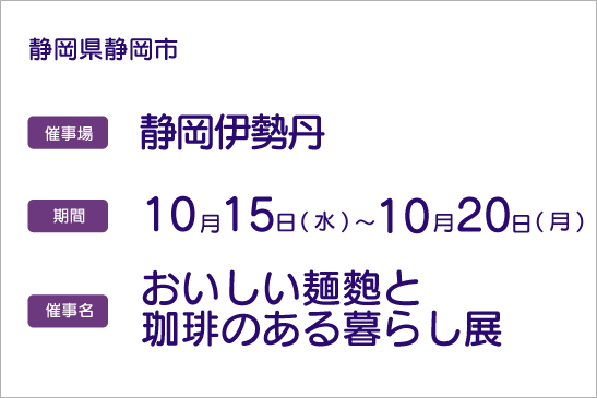 催事情報:10/15(水)~10/20(月) 静岡伊勢丹